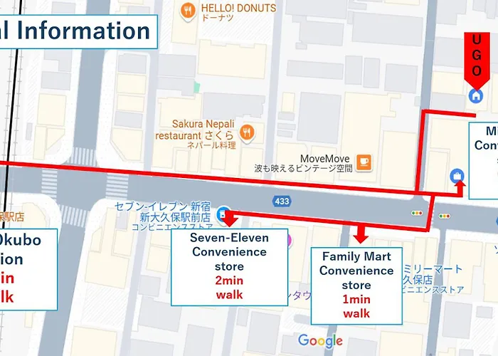 Puente Rainbow se encuentra a 10 km del alojamiento. Puede encontrar Santuario Meiji a 3.2 km de la propiedad. Los huéspedes pueden disfrutar de sus comidas en un sushi barTsukiji Kiyomura Sushi-Zanmai Higashi Shinjuku-ten, que se sitúa en las cercanías.La villa Ugo Villa está ubicada cerca de Hariti.